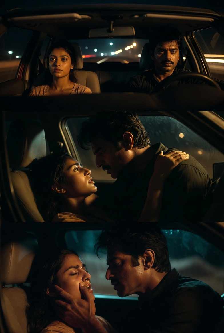 The humid Mumbai evening wrapped around them like a lover's secret as Vijay eased the old Maruti Swift out of the Andheri parking lot. Rohan was away on a business trip to Pune—two whole days of freedom. Priya had suggested the drive: "Papa, chalo long drive pe. Ghar mein risk bohot hai." Vijay had smirked, knowing exactly what she meant. Now, with the city lights blurring past the windows, the air inside the car crackled with anticipation. Priya wore a short red sundress that rode up her thighs, no bra, panties already damp from the thoughts swirling in her mind. Vijay's hand rested on the gear shift, but his eyes kept flicking to her exposed legs.
